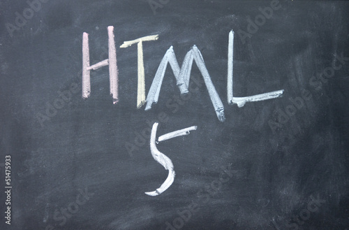 html 5 sign written with chalk on blackboard