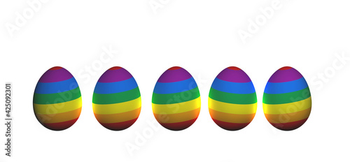 Huevos en 3d con la bandera gay lgtbi. Render sobre fondo blanco.