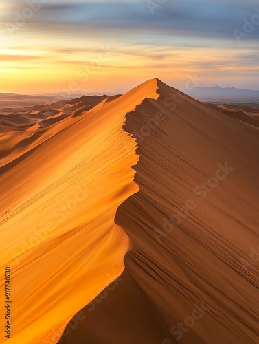 Huge sand dunes in the endless desert, bathed in golden sunlight