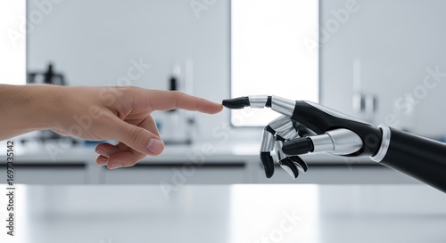 Human and robotic hand touching - connection of technology and humanity