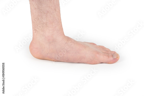 Human bare foot displaying the pes planus condition, characterized by a flattened arch, providing a clear visual for medical education and orthopedic health issues