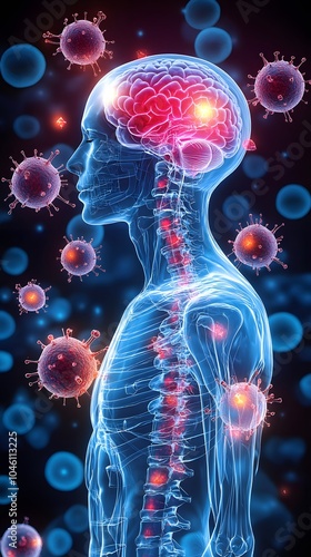 Human Body with Brain and Virus Illustration