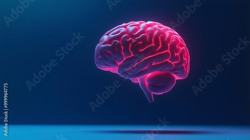human brain in neon light on purple background