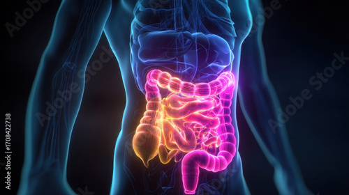 Human digestive system anatomy, 3D medical illustration of large and small intestines