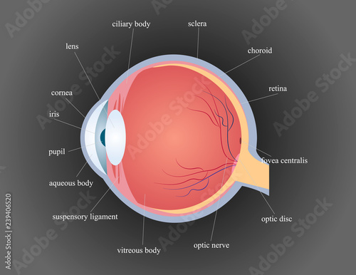 Human eye structure. Eyeball anatomy. Human anatomy. Human organs vector illustration