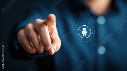 Human finger activating a digital button, interface interaction and technology control