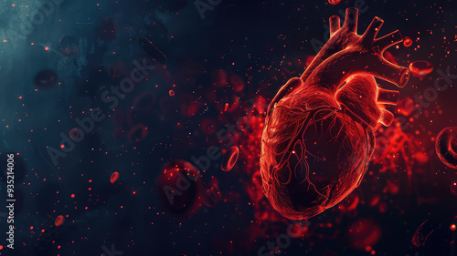 Human heart with cardio pulse line chromosome and Flowing red blood cells