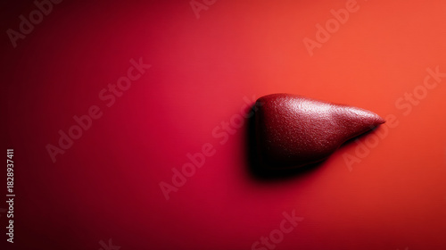 Human liver organ with textured surface on a red background, representing detoxification, metabolism, and medical science research