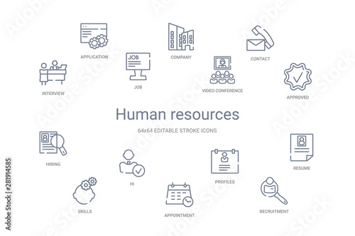 human resources concept 14 outline icons