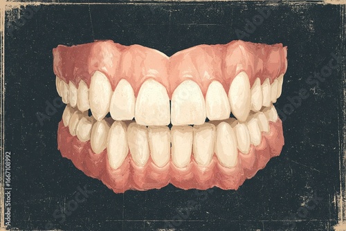 Human teeth displayed in a graphic style showcasing dental structure and anatomy with details on dental health and care