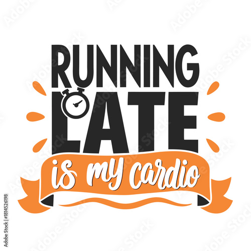 Humorous Running Late is My Cardio T-Shirt Design with Ribbon