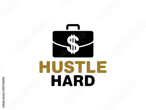 Hustle Hard Motivational Quote Logo with Briefcase and Dollar Sign Symbol