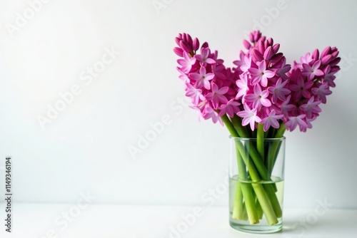 Hyacinth flowers blooming in a vase on white background, floral, blooms, arrangement