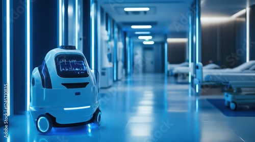 Hydrogen robots performing medical tasks in futuristic hospitals, advanced systems ensuring precision and sustainability