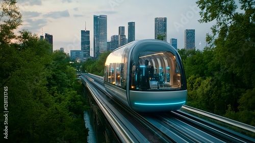 Hyper Realistic Maglev Car on Track with City Skyline Background