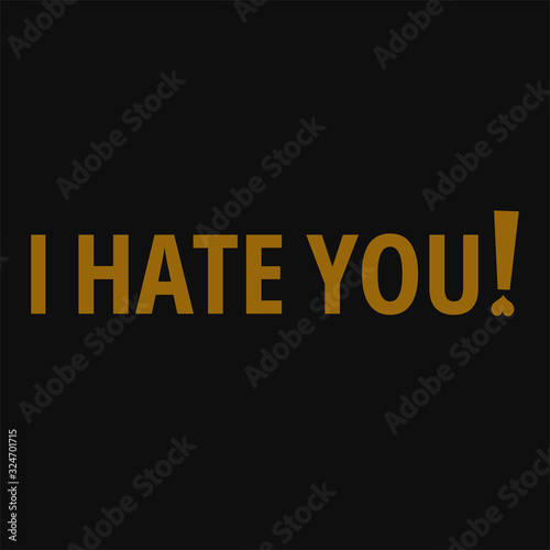 I hate you. Inspiring typography, art quote with black gold background.