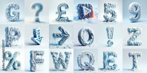 art, generative, generated, illustration, ai, typeset, typography, letter, lettering, typeface, typographic, letter, type, alphabet, font, text, character, rudiments, icy, snowy, melting, iceberg, snowfall, christmas, snowflake, typescript, seasonal, collection, creative, snow, ice, winter, cold, style, signs, frost, blue, symbol, graphic, cool, design, set, three-dimensional, glacé, season, white, poster