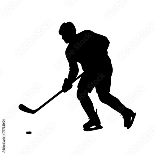 Ice Hockey Player with Stick - Classic Black Silhouette Vector