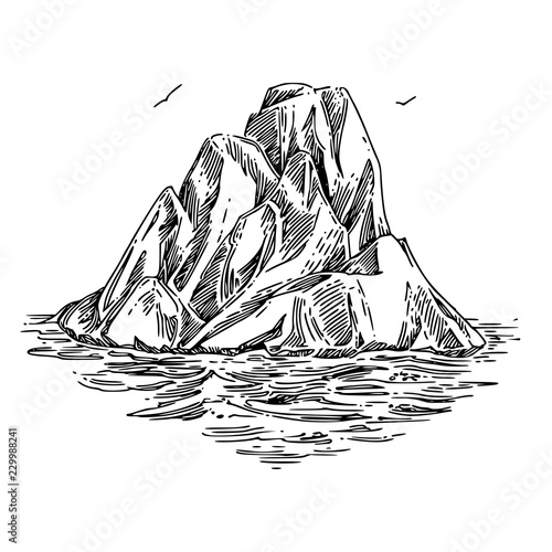 Iceberg. Sketch. Engraving style. Vector illustration.