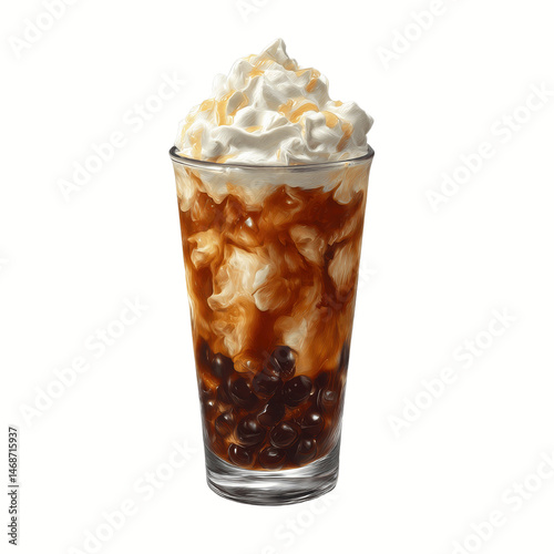Iced Coffee with Boba and Whipped Cream - Refreshing Summer Drink