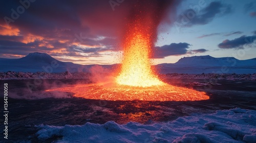 Icelandic Volcano Eruption at Sunset: A Fiery Spectacle