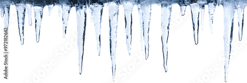 Icicles hanging isolated on white background