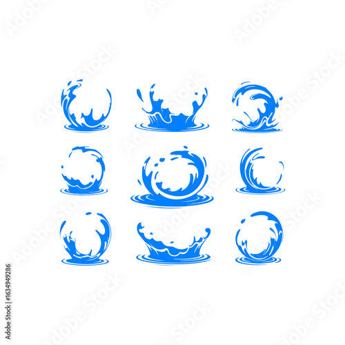 Icon Black 15.epsA set of 9 blue fill-only realistic vector illustrations on a white background, style of abstract liquid splashes, high contrast, symmetrical and asymmetrical."