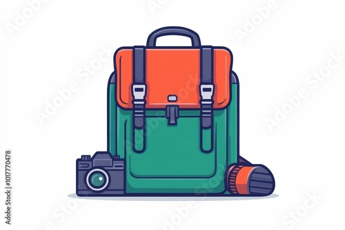 icon depicting a stylized travel backpack a map and a in a clean and modern graphic design style isolated on a white background This image represents the essential elements of the spirit of travel