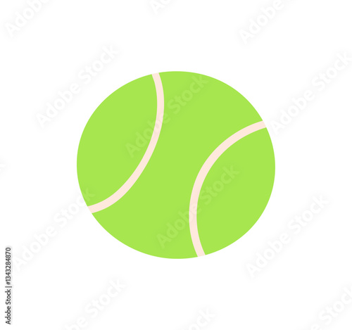 Icon of green ball with stripe, big tennis equipmant with round, athletic inventory for fitness training, racket sport inventory with sphere form, athletic tool to play court game vector illustration.