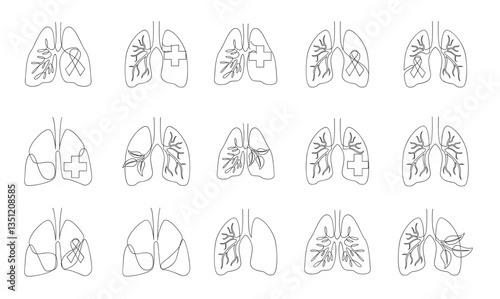 icon Style Lungs outline Human internal organ, lungs line icon design for medical app, logo, website. Vector illustration. Lungs vector icon set