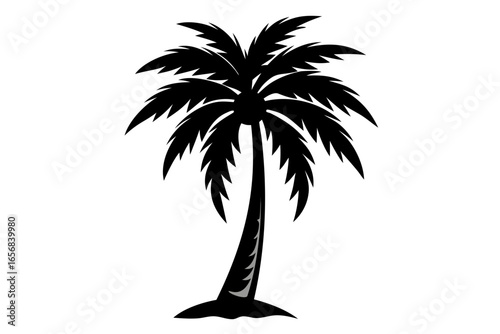 Iconic black silhouette of a tropical palm tree standing tall against a clean backdrop, perfect for vacation, travel, and nature themes