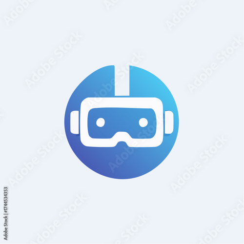 Iconic depiction of a virtual reality headset within a gradient blue circular design
