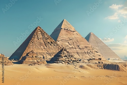Iconic Pyramids of Giza with Majestic Blue Sky in Egypt