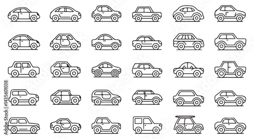 Iconic vehicle illustrations in a black and white vector style.