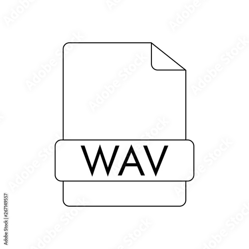Icono plano lineal extensión WAV en documento en color negro