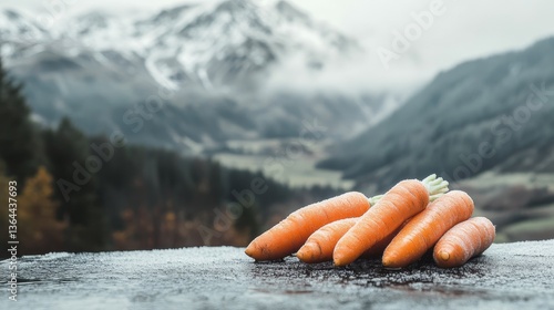 Icy Carrots in Mountain Landscape - Fresh, Cold ,Vegetables