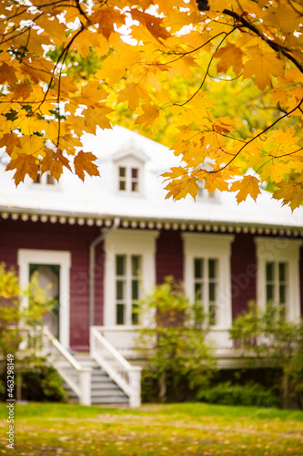 Idyllic natural park scenery located in the heart of Saint-Roch-des-Aulnaies at autumn time in Quebec, Canada