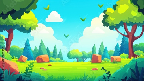 Idyllic Summer Forest Scene With Lush Green Meadow
