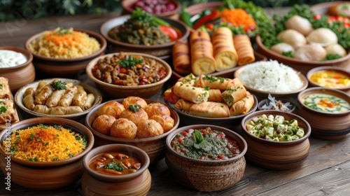 Iftar Table Spread: Photo of a dining table full of iftar dishes.