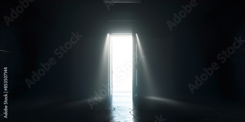 Illuminated Basement Scene with Open Door in Smoky Darkness. Concept Basement Scene, Open Door, Smoky Darkness, Illuminated Setting