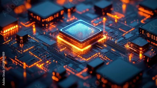 Illuminated Central Processing Unit on Circuit Board