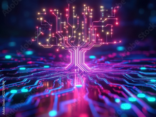 Illuminated circuit tree network digital landscape abstract art futuristic design high-tech environment
