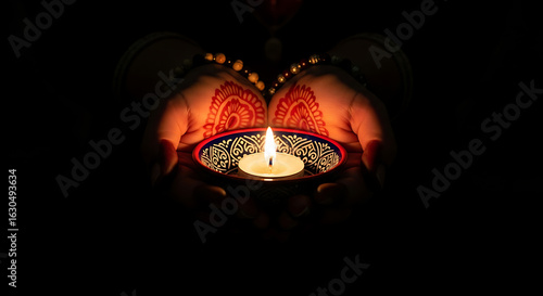 Illuminated devotion: Hands holding a diya in a display of cultural reverence amidst darkness