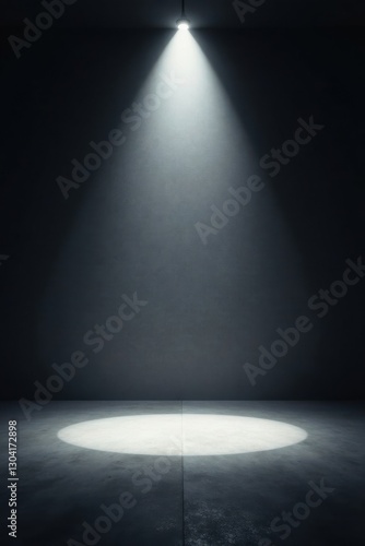 Illuminated Empty Space A Single Spotlight on a Dark Floor and Wall, Creating a Dramatic and Mysterious Atmosphere