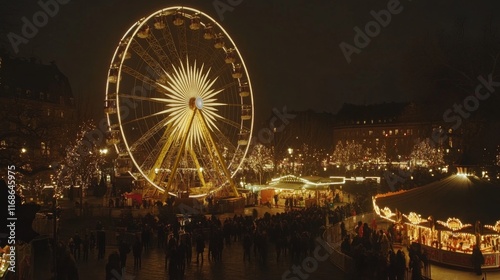 Illuminated Ferris Wheel in a Festive Winter Night Scene
