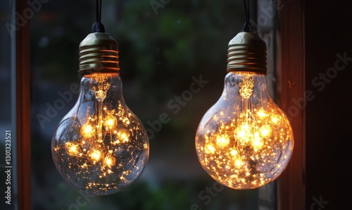 Illuminated glowing light bulbs display brilliant beauty.