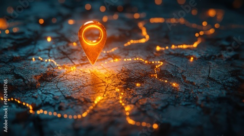 Illuminated map pointer on cracked earth. Possible use stock photo