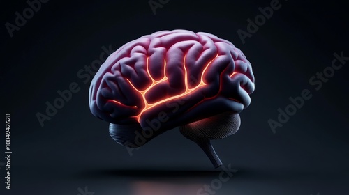 Illuminated Mind: 3D Render of a human brain with glowing neural pathways, signifying intelligence, creativity, and cognitive function.