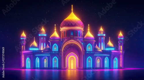 Illuminated Mosque Night Scene A Vibrant Architectural Marvel
