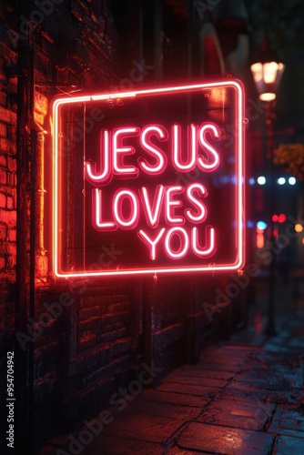 Illuminated Neon Sign: A Vibrant Expression of Faith and Love in Urban Life